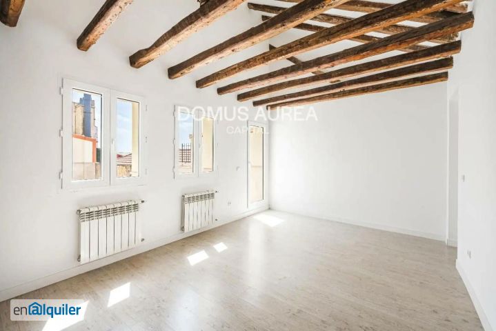 Domus Aurea Capital presenta este ático reformado sin amueblar en el prestigioso distrito de Chueca Justicia. Espectacular ático ubicado en la sexta planta de un emblemático edificio de 1930, es muy luminoso gracias a su orientación sur y este y su altura con vistas despejadas a los tejados de Madrid. Se encuentra recién reformada conservando las vigas de madera originales combinándolo con materiales modernos, suelo de tarima de madera, calefacción de Gas Natural y aire acondicionado por split. Se distribuye en recibidor, salón-comedor, cocina independiente totalmente equipada con electrodomésticos de calidad con ventilación y luz natural y tres dormitorios con techos altos abuhardillados, dos de ellos comparten baño completo con bañera y el principal con su propio baño en suite. Dispone de un precioso patio interior de 35m2 para disfrutar todo el año. Finca con conserje. Ascensor llega hasta la quinta planta, para acceder a la vivienda dispone de escalera. Domus Aurea Capital es una boutique inmobiliaria especializada en la intermediación, construcción y gestión de activos inmobiliarios en las zonas prime de Madrid y alrededores.