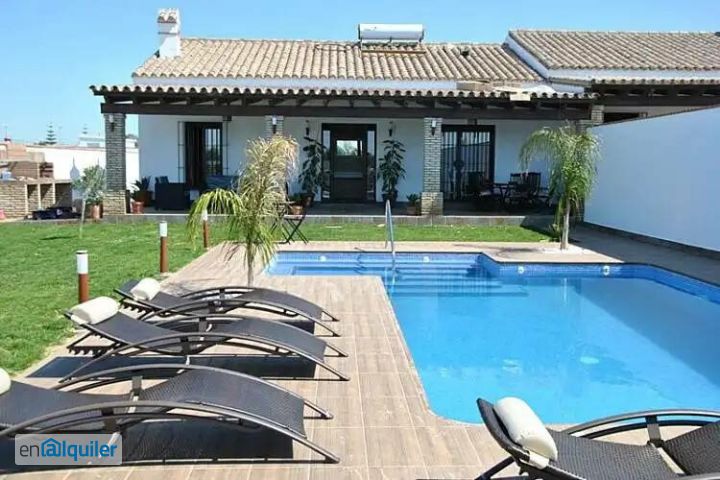 Para larga temporada sólo desde el 1 de octubre del 2026 al 31 de mayo del 2027. Si te interesa manda mensaje escrito por email o whatsapp en el 744717008 porque lo atiendo mejor La casa es espaciosa y tiene 115 m² de superficie habitable. La gran cocina con bloque central y comedor contiguo abierto a la sala de estar. Tiene 3 habitaciones, 2 de ellas dobles y 1 de matrimonio. Un baño completo y un aseo. Casa es muy luminosa a través de los grandes ventanales hacia el sur y la puerta principal que conecta la sala de estar con la gran terraza y el área de amplio jardin y piscina. A mano todos lo servicios: supermercados, restaurantes,.. . en el Colorado y a 5 km de Conil centro. A 7 minutos en coche de las playas.