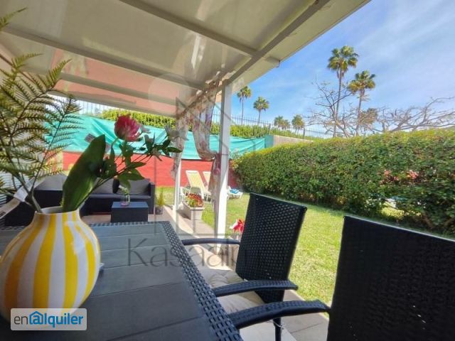 DISPONIBLE PARA ESTANCIAS DE 5 o 6 MESES (NO INFERIORES) HASTA 9 MESES - INVIERNO Encantador bungalow disponible para estancia de temporada de invierno, ubicado en un entorno sereno. Se encuentra listo para convertirse en tu hogar temporal. Está equipado con aire acondicionado y Smart TV con conexión Wifi. La cocina está completamente equipada con 3 fuegos, horno y microondas, lavavajillas , además de pequeños electrodomésticos. Dispone también de lavadora garantizando confort y funcionalidad. Bungalow muy bien situado en un complejo muy bien ubicado, cerca de todos los servicios. Esta vivienda cuenta con 2 habitaciones acogedoras y 1 baño completo y moderno. La terraza principal delantera esta techada y amueblada con muy buen gusto es el espacio perfecto para disfrutar de momentos únicos. Una segunda terraza tambien amueblada cuenta con BARBACOA . Además, su precioso jardín privado con orientación sur permite disfrutar del sol hasta las últimas horas de la tarde y de los fantásticos atardeceres que ofrece la zona. El complejo dispone de piscina comunitaria y aparcamiento. Se acepta pequeña mascota No dejes pasar esta oportunidad de vivir en un lugar donde la modernidad se encuentra con la tranquilidad. #ref:BUN_421
