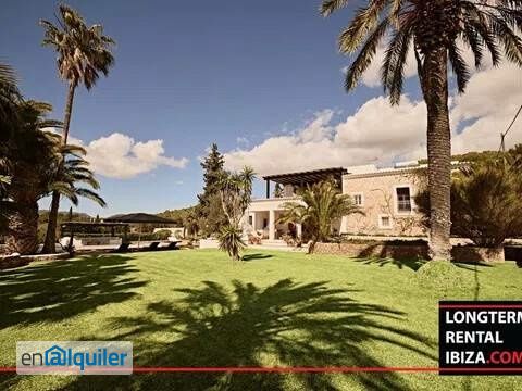 YEARLY RENTAL - SANT JOSEP. Beautiful seven bedrooms villa distributed in a separate flat, a wooden casita and the main house. With a very good location, the fenced villa offers security, privacy and plenty of chill out areas to unwind and relax. Entering the main house you will find a large cosy living room with comfortable sofas to rest after a hard day. To the left we have a dining room with a table for eight people and a sofa area by the fireplace. Further to the left is the fully equipped open plan kitchen with a dinig area tht seats up to six people. From the living room and the kitchen you can access the front porch and the back porch of the villa. To the right of the living room is the staircase leading to the upper floor, a bathroom and two double bedrooms en suite, one of them with access to a small private porch. Upstairs we have the master bedroom en-suite with private terrace with seaview and office area perfect for those who usually work from home, and a second bedroom ensuit with balcony. The pool area is equipped with sun loungers, parasol and a porch where you can relax and enjoy with friends. Also the barbecue area is covered and has a table for up to 24 people, the villa is surrounded by a large and beautiful garden with several porches where you can spend a nice afternoon with your family. The villa also has a two bedroom ensuite flat with a porch and a small kitchenette, which could be used for guests or family, and a complete wooden studio which could be used by guests or staff. Shedule a viewing!
