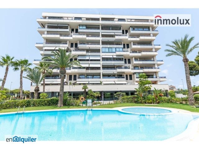 INMOLUX ( A.P.I col. 1044). Sin comisión al inquilino. Presenta en Exclusiva: Amplia y luminosa vivienda en alquiler de larga temporada en La Albufereta, en un enclave privilegiado con bonitas vistas despejadas. Tiene una fantástica comunicación por transporte público con parada de Tram y Bus muy cercana y por transporte privado a un paso de la autovía y de Alicante Centro. El edificio es una construcción reciente dotado de excelentes calidades, con una preciosa urbanización muy completa que cuenta con una soleada piscina, club social, gimnasio, pista de pádel, ping pong, barbacoa y bonitas zonas ajardinadas. Se alquila sin muebles, excepto cocina y baños que quedan totalmente equipados. Se distribuye en hall de entrada, cocina independiente, luminoso salón con acceso a una gran terraza de orientación Sur y unas bonitas vistas que hará las delicias de las reuniones familiares y entre amigos. Además tiene cuatro dormitorios todos con armarios empotrados más dos baños completos, uno de ellos en suite. El inmueble cuenta con toldos eléctricos, estores automáticos en cocina, osmosis y cerramientos climalit con rotura de puente térmico y la gran ventaja de ser todo exterior. Además incluye una estupenda plaza de garaje subterránea. *El presente documento tiene carácter meramente informativo, orientativo y no vinculante por lo que no supone información contractual alguna, siendo su uso estrictamente comercial.