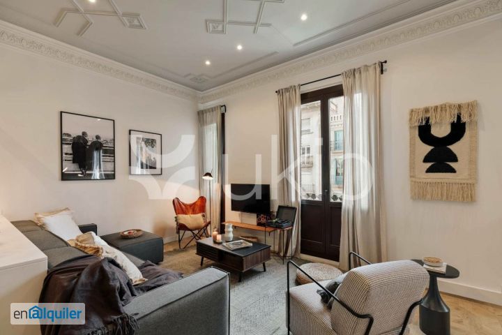 *COMPLETAMENTE AMUEBLADO* *ALQUILER MENSUALES DE 1 A 11 MESES*" Este piso de estilo típico de Barcelona tiene hermosas baldosas y techos altos Al entrar al piso, se encuentra con un comedor con una gran mesa de madera, el lugar perfecto para disfrutar de su desayuno. Al otro lado del pasillo, encontrarán el segundo dormitorio y la segunda casa de baño. Esto también se puede convertir fácilmente en un segundo dormitorio si así lo desea. La enorme cocina de espacio abierto adornada de vinilo negro, está equipada de electrodomésticos nuevos. El salón está diseñada con tonos neutros, que se equilibran con las plantas que cuelga sobre la cocina y la impresionante higuera. El dormitorio está separado por grandes puertas blancas y las paredes azul oscuro crean un ambiente más relajante. Hay una gran cama de matrimonio y una pieza central amarilla en la pared que da un toque de color. Tanto la sala de estar como el dormitorio tienen balcones desde los que se pueden ver las escenas de la ciudad de Fontanella y Plaça Catalunya. Además, hay dos baños completos, uno con bañera y el otro con ducha tipo lluvia, según sus preferencias. La mezcla de tonos de color, fotografías de paisajes montañosos y detalles únicos crean un espacio moderno pero acogedor. Además, el apartamento está equipado con WiFi de alta velocidad y SmartTV. Las plantas están vivas y vibrantes, por lo que no debe preocuparse por cuidar con nuestro sistema de riego automático. El apartamento cuenta con lavadora, lavavajillas, y aire acondicionado para su máxima comodidad. *Los precios y la disponibilidad pueden variar según la duración de la estancia y la antelación de la reserva. Los servicios públicos y los gastos por mascotas no están incluidos en el precio del alquiler, todo se detallará en el contrato final. *El mobiliario y la decoración pueden diferir ligeramente de las fotos debido a mantenimiento y mejoras de calidad por nuestro equipo de diseño. *Para consultar precios actualizados, disponibilidad y todos los detalles del apartamento, visita nuestra web. Para cualquier duda, consulte con un agente de ventas. *El precio indicado se aplica únicamente a estancias destinadas exclusivamente a fines vacacionales, recreativos o de ocio.