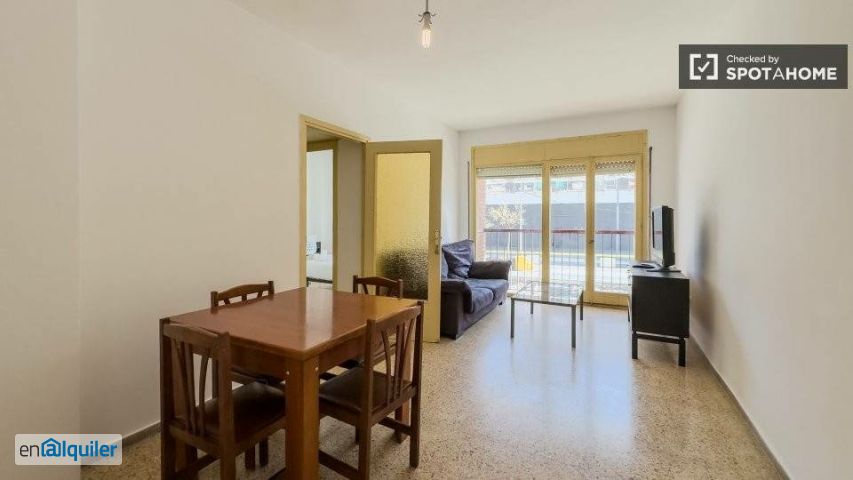 Bienvenido a este espacioso apartamento de 3 habitaciones en alquiler en El Clot, Barcelona. Totalmente amueblado y con calefacción de gas natural, este piso exterior le ofrece un ambiente acogedor. Se permite fumar, lo que ofrece flexibilidad a los inquilinos con esta preferencia. Los gastos de luz, agua, gas y wifi están incluidos en el alquiler para su comodidad. La propiedad ha sido revisada por Spotahome, lo que garantiza una experiencia de alquiler fiable y sin complicaciones. El barrio de El Clot ofrece diversos puntos de interés para los residentes. Entre las opciones gastronómicas cercanas se incluyen restaurantes encantadores como Deliziosa, El Saborita y Secho's, que sirven una variedad de especialidades culinarias. Además, la cercana Torre Agbar ofrece una atracción turística emblemática a poca distancia a pie. Convierta este apartamento en su nuevo hogar, accesible a través de las vibrantes calles de la Gran Vía de les Corts Catalanes.