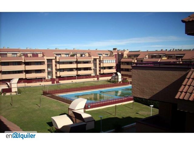 REAL-VIV ALQUILA en Las Rozas, Zona de la Dehesa, Ático con GRAN TERRAZA DE 18 M2, 2 dormitorios, 2 baños completos, cocina independiente con terraza/tendedero y salón-comedor con salida a la terraza. Incluye plaza de garaje y trastero. Gran urbanización cerrada con piscina y diversas instalaciones deportivas. Muy tranquilo y luminoso. No se admiten mascotas.
