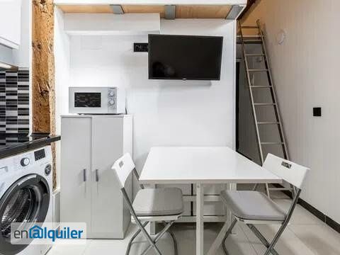 Estudio recién reformado con mucha luz y capacidad para 2 personas situado en Plaza de Santa Ana a 2 minutos de la Puerta del Sol. Localizado en la tercera planta de un edificio histórico sin ascensor, está totalmente equipado con televisión de pantalla plana, aire acondicionado frío calor, lavadora, cafetera de cápsulas, calentador de agua, platos, sartenes, vasos, tazas, cubiertos etc. Dispone de cama matrimonial con un gran armario situados ambos en otra planta superior a la que se accede con una escalera. Dispone de un baño totalmente equipado con plato de ducha y secador de pelo. Es el apartamento perfecto para cualquiera que quiera venir al centro de Madrid ya sea por motivos de estudios, laborales o médicos. Hay un parking parking público a escasos 50 metros del piso. El apartamento al estar situado en pleno corazón de Madrid, y con una gran variedad de opciones de desplazamiento tanto de metro, con las paradas de Puerta del Sol, Atocha, Antón Martín, Sevilla y Banco de España, así como de tren con las de Puerta del Sol (unión directa con el aeropuerto) y Atocha (con cercanías y con el tren de alta velocidad) (autobús, patinete, o bici), permite al estudiante estar a escasos minutos de muchas universidades (Complutense, CEU, Carlos III, Politécnica etc). El barrio de Cortes forma parte del centro histórico de la capital, ofreciendo una enorme variedad de experiencias, tanto culturales como de ocio. En este barrio está el triángulo del arte -formado por los tres museos más representativos de España: el Prado, el Thyssen-Bornemisza y el Reina Sofía- y en el que están los mas famosos teatros, linda con La Puerta del Sol y con la Gran Vía -calle en la que además de múltiples tiendas de moda, se encuentra el Broadway Español, que ofrece la mayor y mejor cartelera de musicales y espectáculos de toda España cuenta con infinidad de restaurantes, pubs, y coctelerías, que hacen de este barrio el mas divertidos de Madrid. El alquiler es por temporadas, mínimo 1 mes y máximo 11 meses. Necesario solvencia demostrable o aval familiar. Hay que demostrar temporalidad laboral, de estudios o por motivos médicos. El alquiler es no vacacional. Actualmente disponible. Sin gastos de agencias. Agua incluida. Internet de fibra óptica por wifi incluido.