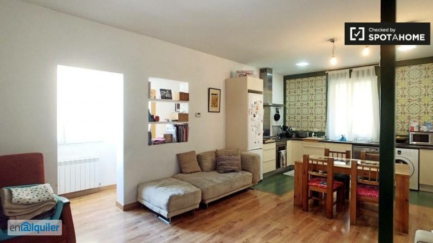 Un moderno apartamento de 2 dormitorios con aire acondicionado está disponible para alquilar en Salamanca. El apartamento tiene una amplia sala de estar, donde podrá relajarse en el sofá acogedor y ver sus programas de TV favoritos después de un largo día explorando la ciudad. La cocina de planta abierta tiene todo lo esencial para cocinar una tormenta, incluyendo un horno, una estufa y un microondas. Ambas habitaciones tienen mucha luz natural, y cada una está bien amueblada con una cama individual o doble y un montón de espacio de almacenamiento para todas sus cosas. En el baño, encontrarás una bañera grande y lujosa. Vivirás en Salamanca, uno de los barrios más exclusivos y elegantes de Madrid. Alrededor de la zona, encontrará muchos restaurantes de moda, cafeterías, bares y tiendas para disfrutar. Y, con 2 estaciones de metro cercanas, ¡nunca estarás lejos de cualquier cosa en Madrid!
