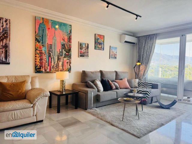 Impresionante apartamento de tres dormitorios disponible ahora para alquiler de larga temporada, situado en una ubicación inmejorable en la prestigiosa zona de Nueva Andalucía. La propiedad disfruta de espectaculares vistas al mar y a la emblemática montaña de La Concha, creando un entorno de vida verdaderamente excepcional. Ubicado en un complejo cerrado y seguro, este luminoso y amplio apartamento ofrece generosas zonas de estar. Dispone de tres dormitorios bien proporcionados, dos baños, un cómodo salón-comedor, cocina totalmente equipada y una terraza privada perfecta para disfrutar de las vistas y del clima mediterráneo. Los residentes pueden disfrutar de una preciosa piscina comunitaria muy bien cuidada, así como de amplio aparcamiento interior dentro del complejo. Idealmente situado a poca distancia a pie de Centro Plaza y de todos sus servicios ?supermercados, restaurantes, cafeterías y academia de idiomas?, el apartamento se encuentra además a un agradable paseo de Puerto Banús, el puerto deportivo y la playa, ofreciendo el equilibrio perfecto entre tranquilidad y comodidad.