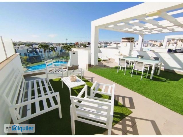 ¡ALQUILER DISPONIBLE DESDE YA HASTA ENERO! Alquiler disponible también desde MARZO hasta JUNIO.  Se presenta este apartamento en segunda planta, una vivienda amplia y funcional, ideal tanto como residencia habitual como para estancias de temporada. Destaca por su gran terraza privada y una distribución cómoda que favorece la luminosidad y el confort en cada estancia. CARACTERÍSTICAS DE LA VIVIENDA Superficie interior de 75 m²Terraza privada de 70 m²2 dormitorios2 bañosSalón comedor amplioCocina abierta con barra americana, totalmente equipadaAire acondicionadoPiscina comunitariaParkingSegunda planta sin ascensorMascotas bajo consulta UBICACIÓN A 5 km de la playa del CampoA 38 km del Aeropuerto de AlicanteA 25 km del campo de golf Las RamblasA 1 minuto de zonas de ocio, restauración y servicios ¿Te interesa? Contamos con un asistente virtual disponible 24/7 para ayudarte en todo el proceso de alquiler. Escríbenos por WhatsApp al +34 624 45 06 30 o por correo a info@sunandsearealestate.com Referencia: RENT-4021MGRSP