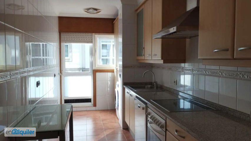 Santiago centro, rua lopez ferreiro, se alquila piso sin muebles, tres habitaciones todas con balcón, armarios empotrados, dos baños completos, uno en suit con bañera de hidromasaje, cocina equipada, combi, vitro, lavavajillas, salón, garaje, trastero, calefacción gas ciudad, gastos de comunidad incluidos en el precio. Posibilidad de alquilarlo amueblado. Piso exterior.