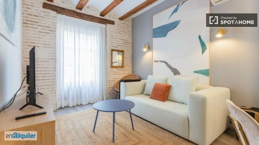 ¿Buscas un espacio cómodo y completamente amueblado en Valencia? Este apartamento de 2 dormitorios en El Botánic está equipado para satisfacer tus necesidades. Cuenta con aire acondicionado individual para un confort óptimo, calefacción por aire acondicionado y sistema de agua caliente por gas natural. El apartamento exterior ofrece balcón y una cocina totalmente equipada con lavavajillas, horno y secadora. También disfrutarás de comodidades como televisión y lavadora de uso común. No se permite fumar ni se admiten mascotas. Además, ha sido revisado personalmente por Spotahome. Ubicado en El Botánic, estarás cerca de importantes atracciones. Disfruta del Jardín Botánico y el Monumento a Vicente Domènech, o visita las históricas Torres de Quart y la Ermita de Santa Llúcia. El barrio tiene fácil acceso a restaurantes como el Restaurante Pelegrí, que ofrece cocina mediterránea.