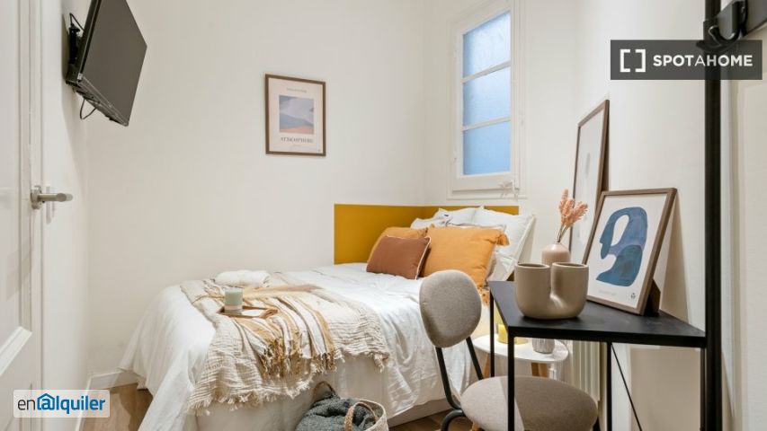 ¿buscas una habitación compartida en el animado barrio de Sant Antoni en Barcelona? Esta habitación forma parte de un piso de 5 habitaciones, ideal para profesionales y estudiantes. Está amueblada y equipada con todo lo necesario para tu comodidad. Spotahome ha revisado personalmente la propiedad para garantizar su calidad, incluyendo electrodomésticos como lavavajillas, horno y agua caliente a gas natural. El Wifi está incluido, pero los gastos de luz, gas y agua se pagan directamente al propietario. No se admiten parejas. Sant Antoni es una zona vibrante y bien comunicada de Barcelona. Entre sus atracciones cercanas se encuentran la Avenida del Paralelo y el Portal de Santa Madrona, con lugares de interés cultural y una amplia oferta de actividades. El barrio también está cerca de establecimientos populares como el restaurante la Bodeguita Bright y otros puntos de interés como el Monumento a Folch Torres, el Teatro Tantarantana y la escultura del Gato de Fernando Botero, creando así una combinación perfecta de comodidad y diversión para sus residentes.