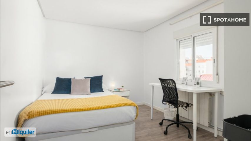 Hay habitaciones disponibles para alquilar en este apartamento amplio y soleado de 4 dormitorios y 110 m² con muebles modernos en el barrio de Cuatro Caminos. La cocina está totalmente equipada con electrodomésticos modernos, y las paredes están parcialmente decoradas con azulejos modernos para agregar un elemento de estilo. Cada habitación es espaciosa, luminosa y cuenta con decoraciones de pared originales y coloridas. Hay 1 baño para compartir entre inquilinos. Cuatro Caminos es un barrio animado que está lleno de bares, restaurantes, cafeterías y supermercados que ofrecen todas las comodidades necesarias para una estancia confortable. La estación de metro Francos Rodríguez está a solo 5 minutos del apartamento y, desde aquí, los inquilinos pueden llegar al centro de Madrid en poco tiempo.
