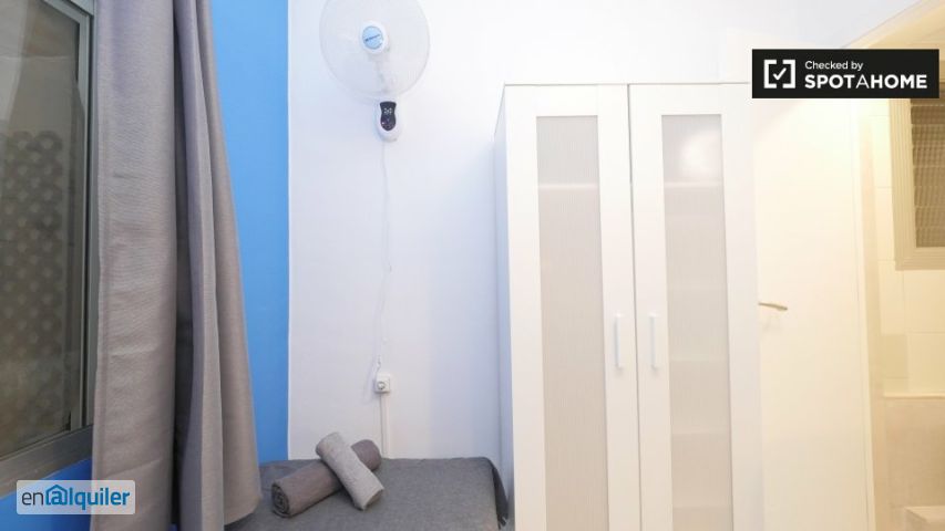 Esta espaciosa habitación en un piso compartido de 5 habitaciones se encuentra en el Clot, Barcelona. Ideal para profesionales, estudiantes y estudiantes Erasmus, esta propiedad está cuidadosamente amueblada y cuenta con cocina equipada, balcón para disfrutar de más espacio al aire libre y acceso privado a lavadora. Además, todos los gastos (luz, agua, gas, wifi e ibi) están incluidos en el alquiler. El piso ha sido revisado por Spotahome, lo que garantiza sus estándares de calidad. Se permite fumar, pero no se admiten mascotas ni parejas. La propiedad se encuentra en el Clot, un barrio de Barcelona conocido por su encanto y comodidad. Cerca, encontrará una variedad de restaurantes como Elitepan, Creps Clot y Beermut, además de mercados como Ametller Origen y Condis. Entre las atracciones turísticas cercanas se incluyen el Parc del Clot, Joana Tomàs y Samurai Experience.
