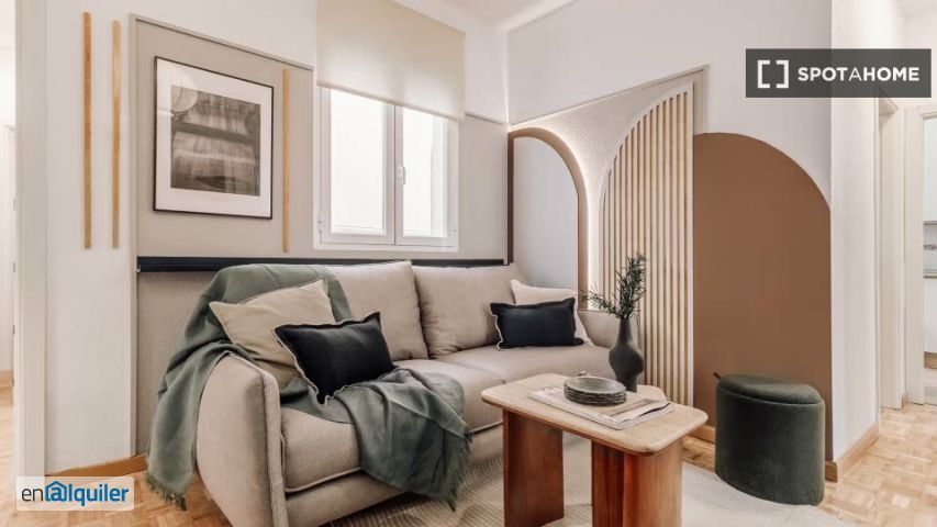 Este espacioso apartamento de 3 dormitorios, completamente amueblado, se encuentra en el vibrante barrio de Ibiza, en Madrid. Cuenta con comodidades como aire acondicionado individual, lavadora, lavavajillas y horno. La cocina está equipada para todas sus necesidades culinarias y cuenta con televisión para mayor entretenimiento. Aunque el alquiler no incluye los servicios, la propiedad ha sido revisada minuciosamente por Spotahome para su tranquilidad. Ubicado en el animado barrio de Ibiza, estará a pocos pasos de restaurantes como Scolani Gastrobar, Caminito del Retiro y Pokebowl Sushi. Además, se encuentran cerca varias atracciones turísticas, como el Mural "paisaje de Ibiza" y el Monumento a Santiago Ramón y Cajal. Esta ubicación privilegiada ofrece comodidad y riqueza cultural, garantizando una excelente experiencia de vida urbana.