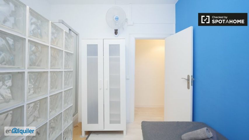 Esta espaciosa habitación en un piso compartido de 5 habitaciones se encuentra en el Clot, Barcelona. Ideal para profesionales, estudiantes y estudiantes Erasmus, esta propiedad está cuidadosamente amueblada y cuenta con cocina equipada, balcón para disfrutar de más espacio al aire libre y acceso privado a lavadora. Además, todos los gastos (luz, agua, gas, wifi e ibi) están incluidos en el alquiler. El piso ha sido revisado por Spotahome, lo que garantiza sus estándares de calidad. Se permite fumar, pero no se admiten mascotas ni parejas. La propiedad se encuentra en el Clot, un barrio de Barcelona conocido por su encanto y comodidad. Cerca, encontrará una variedad de restaurantes como Elitepan, Creps Clot y Beermut, además de mercados como Ametller Origen y Condis. Entre las atracciones turísticas cercanas se incluyen el Parc del Clot, Joana Tomàs y Samurai Experience.